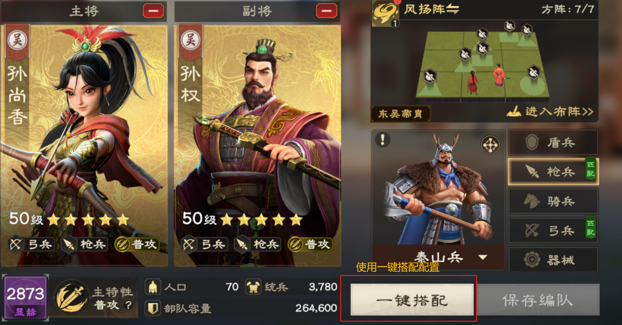 如果上述主公觉得比较复杂,也可以使用编队中的一键搭配来进行配置。