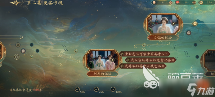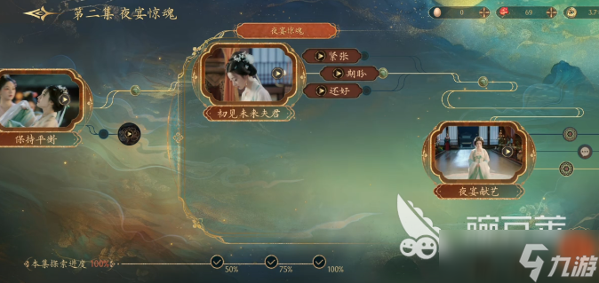 在初见未来夫君的那一段心情选项不要乱选。选择不屑的话太蠢,刚刚入宫就直接摆架子,这简直就是找死。选择淡定也会有一些太假,反而会让别人认为你心思太重。所以老老实实选择紧张即可,很符合两人第1次见面的情侣,也可以显现出自己单纯不做作,有效提升好感度。在夜宴献艺的这一段是一个重头戏,建议直接选择惊艳四座的歌喉。不要想着去弹琴或者是跳舞,跳舞的话还要首饰,根本就没有。弹琴的话又太普通,一大堆人都选,就没有什么好出彩的。