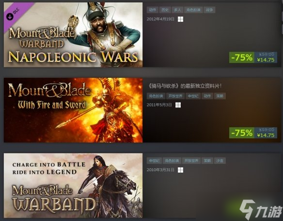 《骑马与砍杀》原价59元,-75%,14.75元(史低-86%,8元)