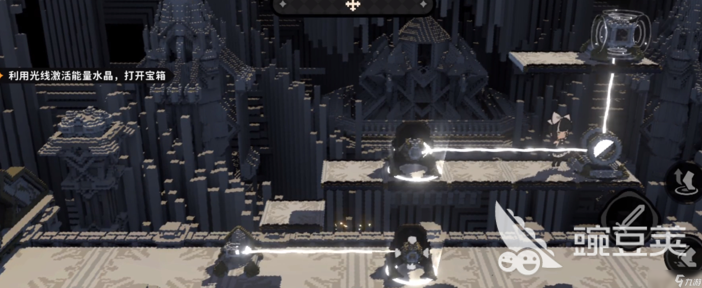 第5关洛加港,进入地图之后将路中间的箱子向左边平移一点,然后借着箱子跳到第二个平台,调整紫色机关使平台上升。然后来到平台最右边的交互点,翻转镜面让光线朝左。之后跳到地面,来到镜面交互点,将镜面翻转使光线朝右就可以了。第6关维亚港,进入地图之后来到黄色机关处将对应平台向右移动,之后来到第一个交互点,翻转镜面让光线朝上。然后跳到第一个平台,将光线调整到向右的方向,之后来到地面的第二个交互点,调整方向将光线朝上。最后跳到最高的平台,将镜面翻转使光线向左,这关就顺利通关啦!不过,这关跳跃难度有点高,大家可以借助交互点慢慢跳上去。