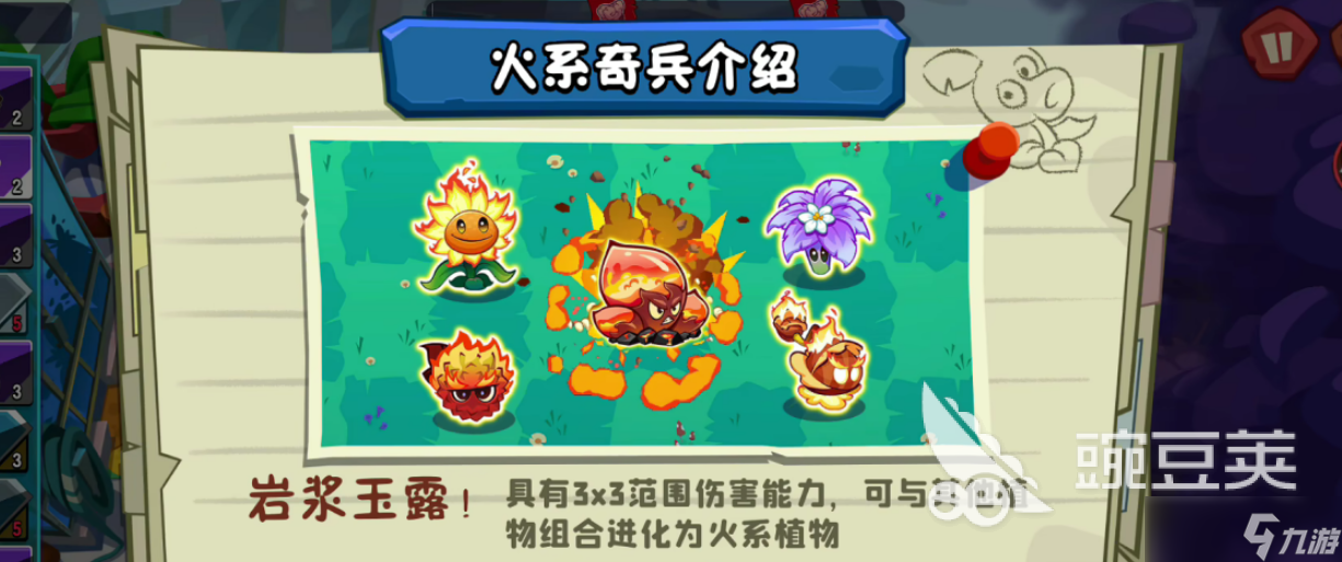 别以为这游戏放几个植物就过得了关,拿个高分可没那么容易,阵容搭配才是关键,火系植物一直打高分,岩浆玉露的爆发能力特别强,小编推荐的是岩浆玉露加熔岩向日葵加熔岩卷心菜加熔岩荔枝,这阵容其实很简单,岩浆玉露进化出熔岩向日葵之后,触发鬼火灼烧效果,轻松秒掉前排的僵尸,再配合熔岩卷心菜的范围伤害,熔岩荔枝的反伤护盾,一发炮弹秒一大片!