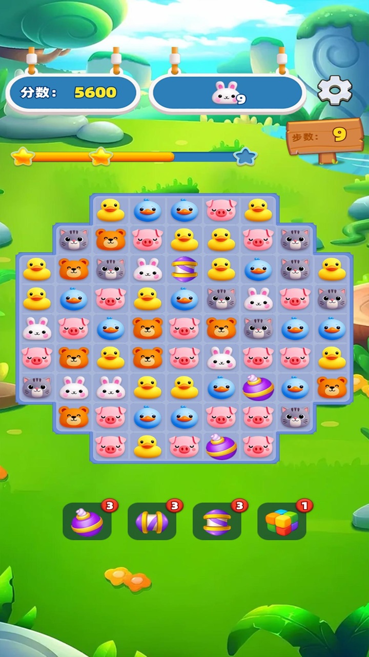 玩家需找到三只或三只以上相同的小动物,通过横向或竖向交换位置使它们连成一条直线,即可消除动物方块。在指定的步数内,需要消除指定的目标,如特定动物等。即可挑战成功。