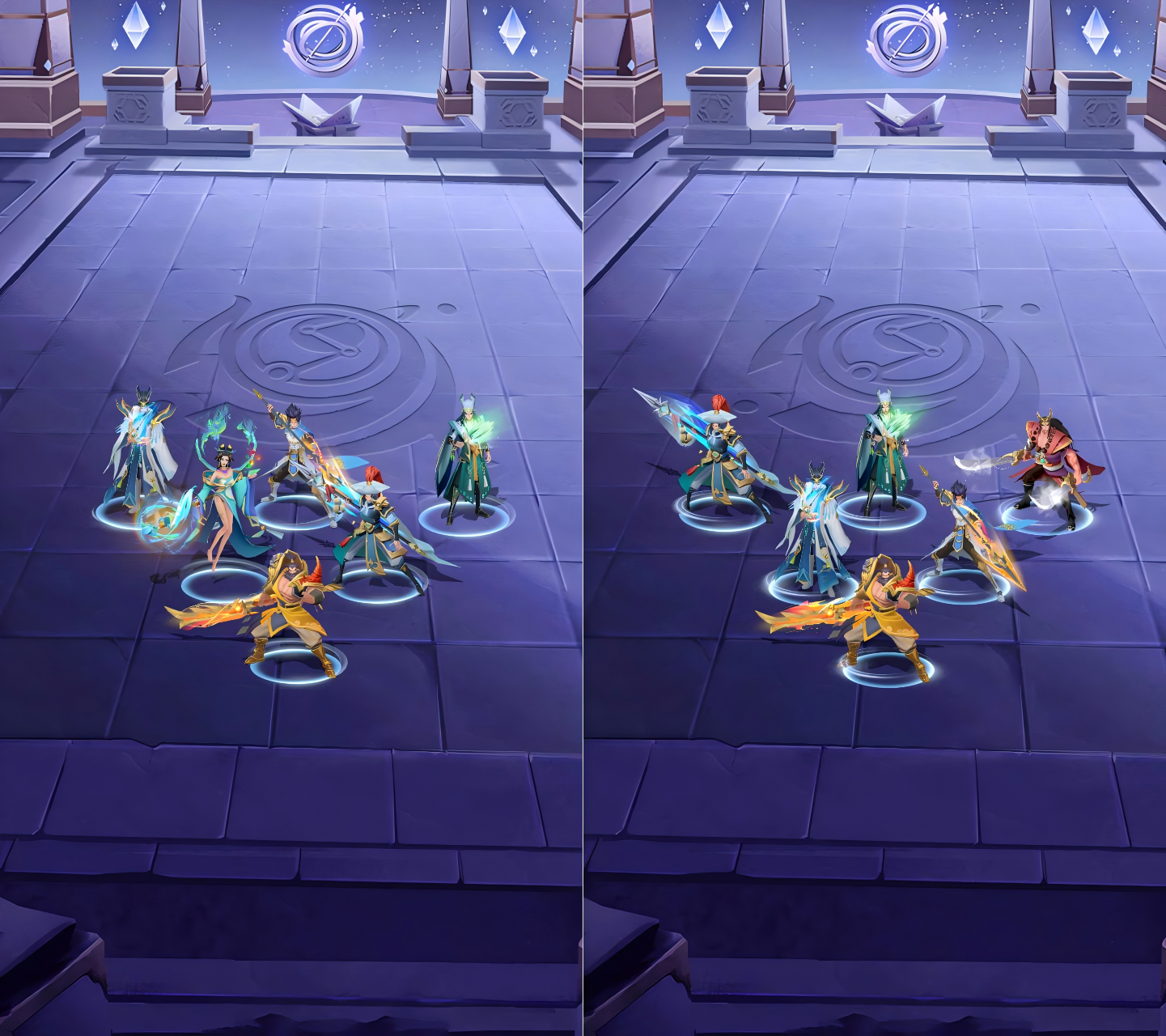 玲珑塔:没有诸葛亮、女娲时可以选择在第二或第三放置玲珑塔,可以复活或回血并提升攻击力。