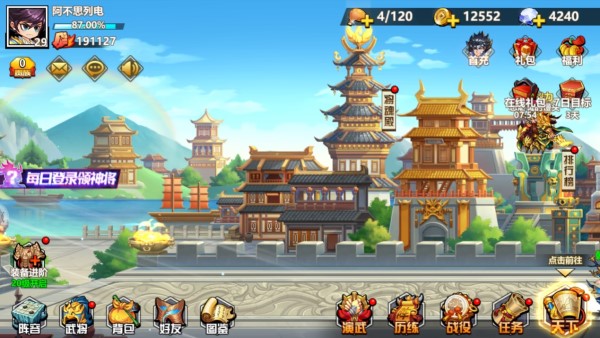 城主府中可以提升自己的爵位,但是需要战力达到之后才可以,而且还可以进行赋税,获得每日的奖励,一天只有一次,所以每次上线都不要忘了领取这些。竞技场也是经常玩的一种玩法,一天只有五次机会,每次提升名次都可以获得丰厚的奖励,十分有用,而且还可以在商店中兑换很多装备武器之类的,用来提升战力必不可少。