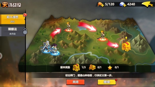 除此之外,每次上线的时候都可以领取离线奖励,不过这个并没有经验值,只有一些材料和金币。之后还可以冲锋领取三次奖励,每次消耗的钻石也是逐渐增加的,但是消耗比较少,所以建议可以全部扫荡完。战役中也有很多关卡,许多通关一个关卡才可以开启另一个,而且在进入之后需要自己探索,这种玩法还是挺考验技巧,而且十分吸引人。
