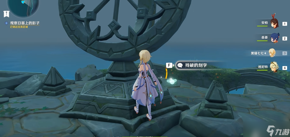 到达小岛后,直接往右侧走会发现一个帐篷和一堆可以打碎的石块。打碎石堆后能捡到一张残破的笔记,这是触发任务的关键道具。打开背包查看笔记内容,上面提示需要在凌晨2点到5点之间进行调查。记得把游戏内时间调整到这个时间段,然后开启元素视野,就能看到日晷周围有四个奇异的绿色光球。