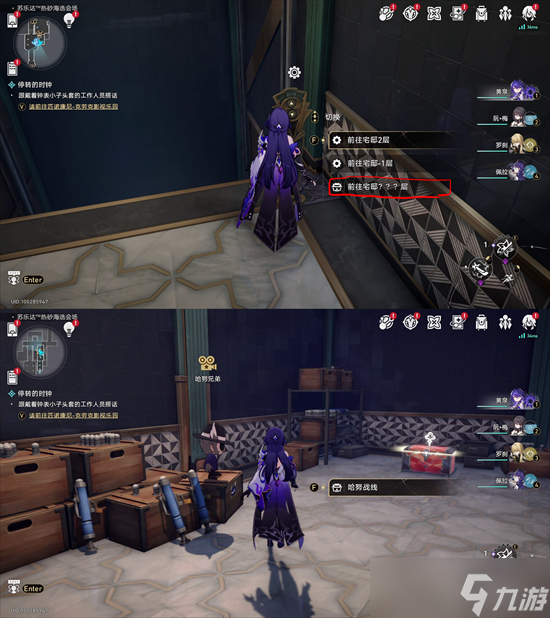 在场景的电梯处选择“前往宅邸???层(-2层)”,与位于该层的哈努兄弟对话即可完成隐藏挑战(无需打任何一关)。