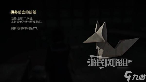 第一个可开启储物柜线索在主楼和后方的旧校舍中。学生们有一套自己的暗号来帮助记忆各自的三位数储物柜密码,基本上都是对照字母找到形状相近的数字。苍井的名字罗马音为AOI,所以A=4、O=0、I=1。输入密码401即可获得下一条关于须贺储物柜密码的线索(密码比较像求救信号)。
