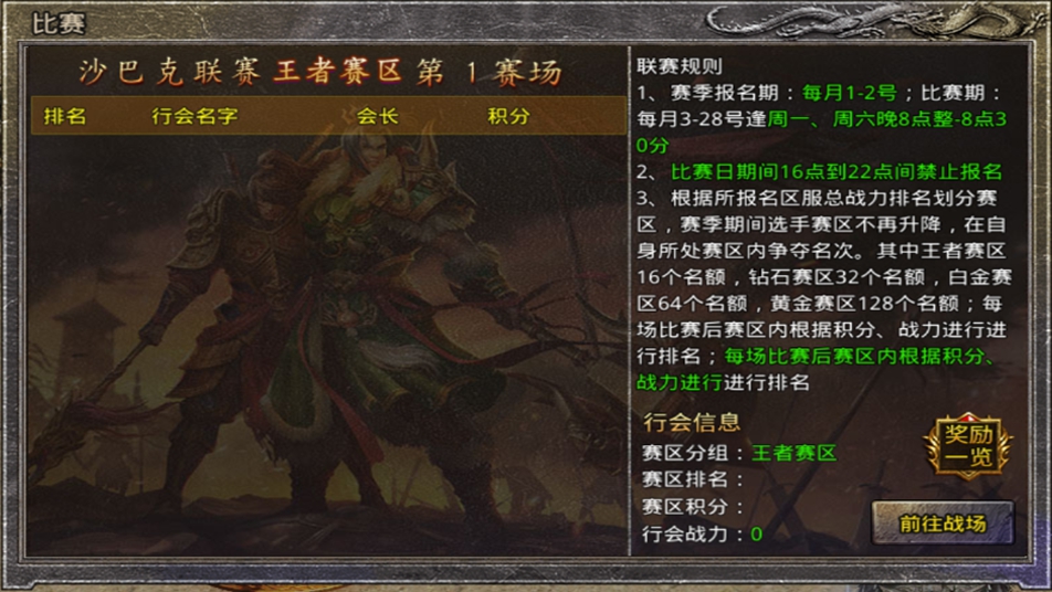 6.赛前准备:赛前当日五点会显示本日比赛行会,让玩家提前组织