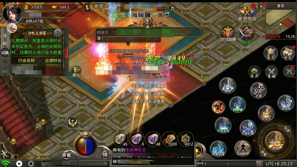 7.赛事玩法:皇宫门口一面旗帜双方行会争夺,旗子的归属行会在皇宫内不会受雷电伤害,未获得旗子归属的行会,在皇宫内会受雷电伤害