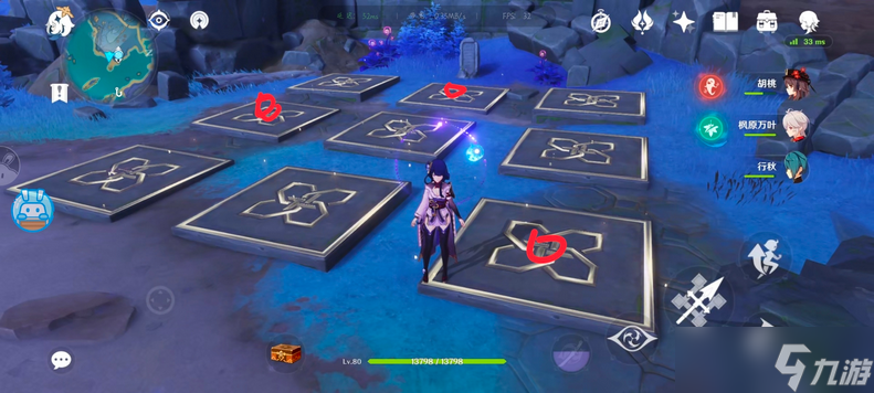 越石村石碑解密的关键在于理解九宫格机关的互补点亮机制。玩家需要先传送到越石村七天神像附近,找到地面由九个石板组成的机关区域。根据石碑提示异相需共照,解密原理是踩踏与提示图案中未亮起的石板相对应的位置。具体操作时,需观察周围石碑上显示的亮灯图案,然后在九宫格上踩踏与之互补的未亮石板。