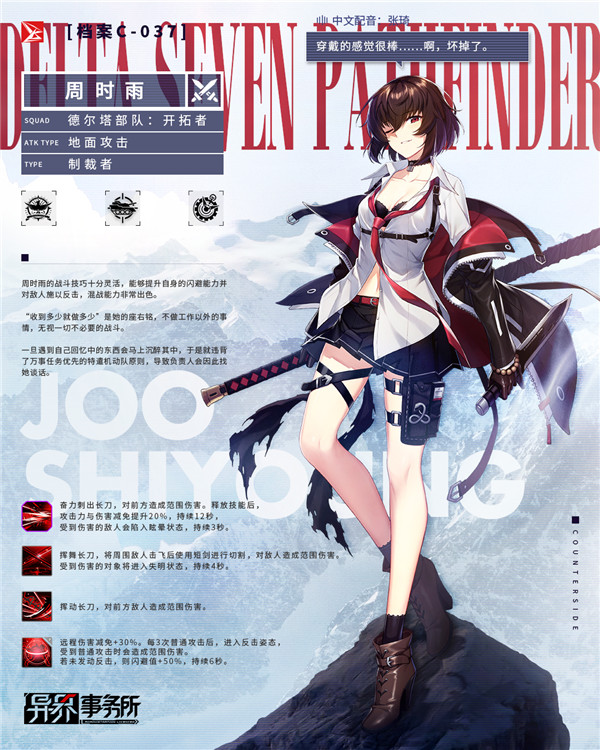 老板,本周的话题人物一定是来自「德尔塔部队:开拓者」的战斗专家“周时雨”和“卡琳”,您一定非常希望获取到关于这两位制裁者更加详尽的分析报告。