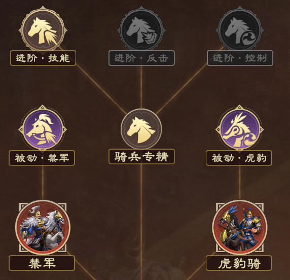 在军政培养上,最终骑兵系培养图如下,需点出来以下军政配合该队伍: