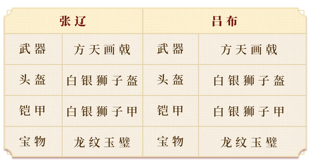 本期为主公们介绍的队伍为无双逍遥骑,是S1赛季最强的技能体系,由张辽与吕布组成。其简单配图如下: