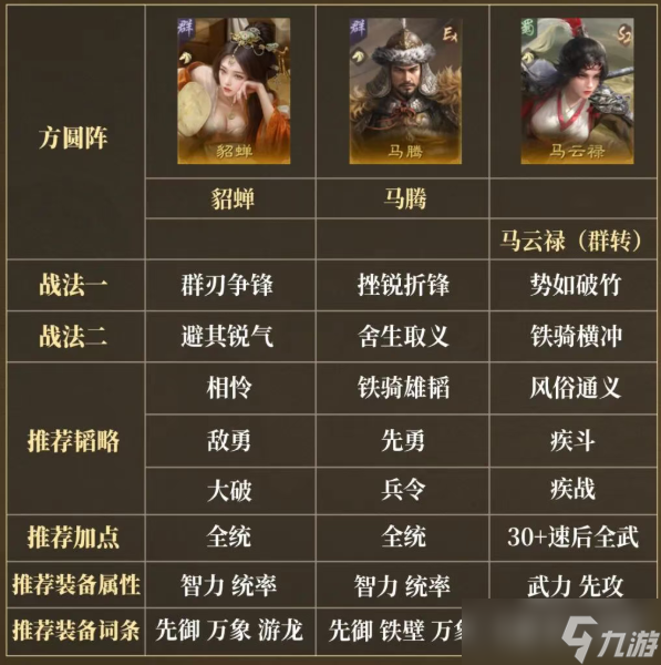 如将马云禄转为群雄,携带一主动战法加一追击战法,搭配马腾、陈宫或貂蝉等武将。