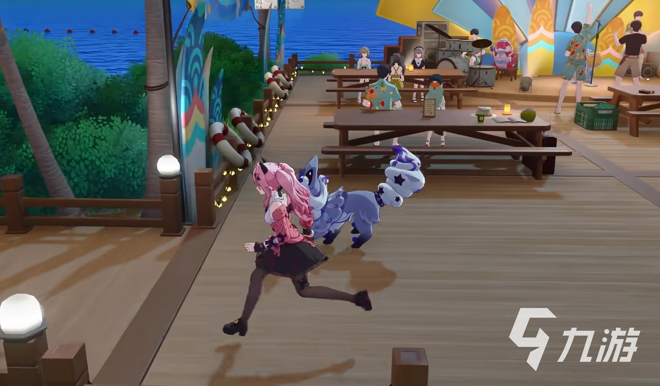 不仅如此,精灵还具备丰富的交互功能。部分精灵会在玩家靠近时主动聚集,有些则会待在跷跷板等设施旁等待互动。更值得一提的是,当玩家成功收服特定精灵后,可骑乘陆地型精灵快速移动,或搭乘飞行类精灵在空中自由巡游,极大提升了探索的趣味性。此外,本作在角色设定上也颇具亮点,既有原创人物加入,也有来自崩坏系列的经典角色回归,让新老玩家都能在新的世界观中结识伙伴、重逢故人。