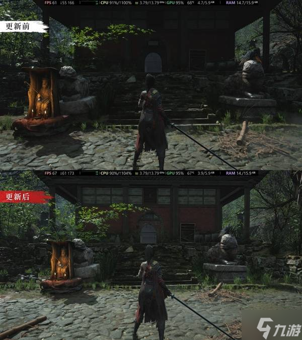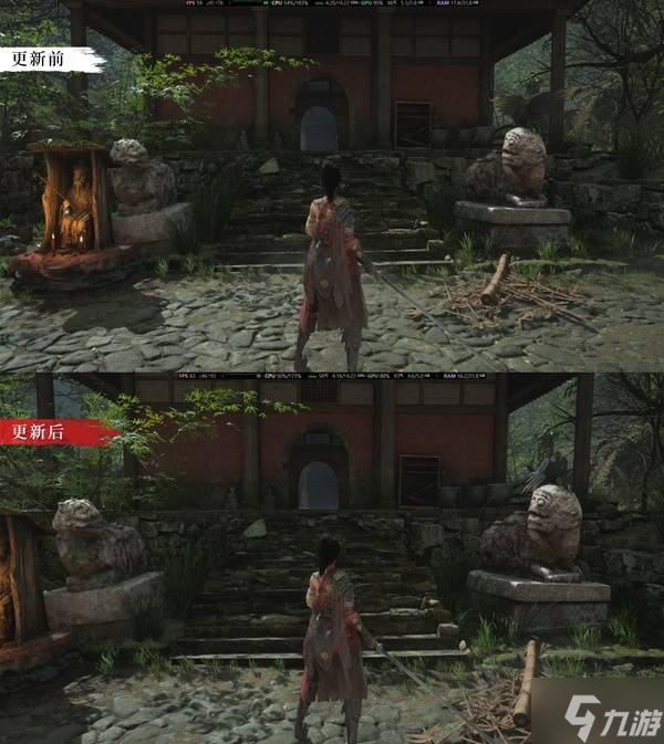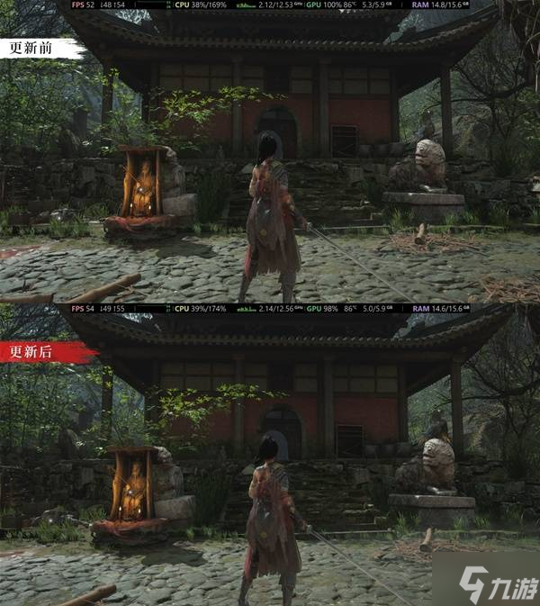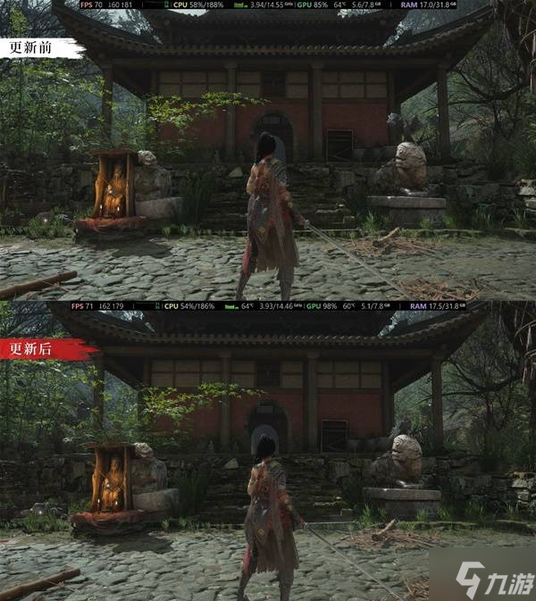 测试地点是含光禅院神龛处,数据由Steam性能监视器提供。