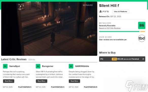 《寂静岭f》全球媒体评分现已正式解禁。目前M站PC版平均分为88分,PS5版为86分,共收录52家媒体评测。