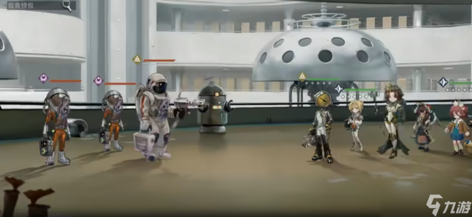 点击参与演习选择地图和小队并进入后,会被传送到地图中,地图中间金色头顶的小人是由玩家操控的乌尔里希组长,可以点击地图中的六边形格子让其花费时间前往,每走一个格子需要花费十分钟,玩家也能看到自身附近一圈格子上的情况。远处的迷雾需要走近才能驱散,等移动到有物资和有人员的格子上时就能花费些时间去跟他们交互,完成交互后就能将其搬到拖车中带走。有人型图标的区域算是招募格,可以在这里招募助理,助理会在后续的基建、探索和战斗中起到很大作用。