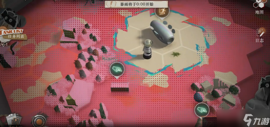 在暴雨来临之前有二十四小时时间用来搜刮物资,每到特定时间点暴雨将由外到内逐渐侵蚀一部分地图,造成缩圈效果,第三次缩圈后整个地图都会被暴雨影响。如果在暴雨范围内行动小队成员的暴雨抵抗力会降低,同时还会受到暴雨症候的影响降低最大生命值,当抵抗力为零时行动就会失败。搜刮到的物资可以分为三大类,分别是论文手稿、物资储备和建筑材料,论文手稿是通用货币,建筑材料属于基建材料,可以用来升级基地建筑解锁更多功能,物资储备则是食物,可以用来喂给招募到的助理。