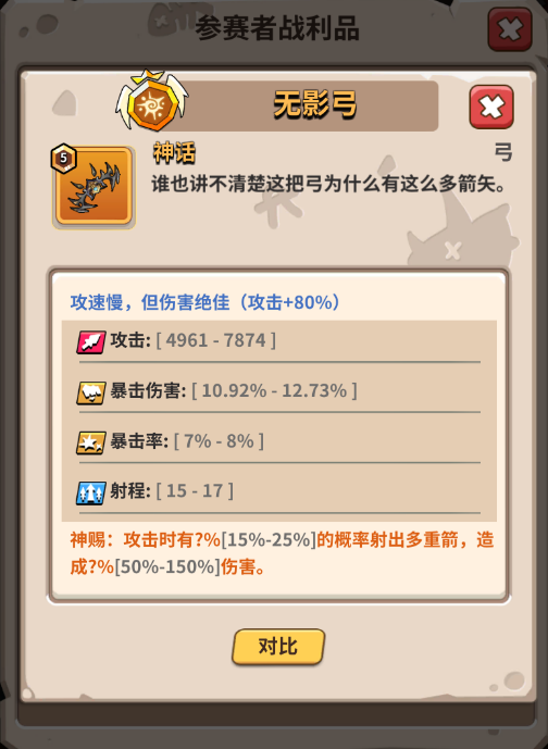 进入赛季主要战斗武器都以弓为主,无影又有较为稳定掉落方式在拥有多把相同弓箭时可合成远古的武器~
