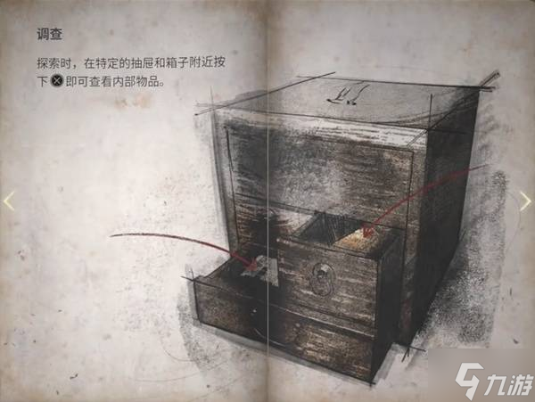 探索时,在特定的抽屉和箱子附近按下X即可查看内部物品。