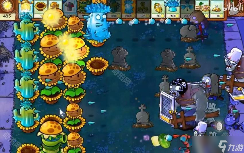 2、在后排放寒冰仙人掌,这个攻击距离远,可以放在最后一排。