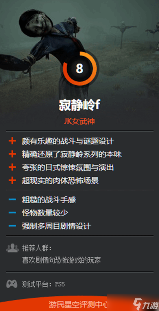 值得一提的是,本站也为《寂静岭f》打出了8分的成绩。我们认为,若排除未完成的《P.T.》以及尚未问世的《寂静岭2》重制版,《寂静岭f》无疑是时隔十余年之后,该系列真正意义上的首部正统新作。它既延续了“寂静岭”一贯的虚实交织手法与深入内心世界的叙事风格,又带来了足够血腥猎奇的视觉冲击。甚至其初看略显粗糙的战斗系统,在实际体验中也展现出别具一格的乐趣。
