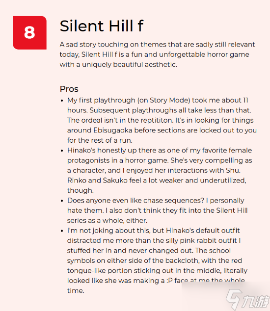 今日,外媒siliconera解禁了对《寂静岭f》的媒体评分,测评人最终给予该作8分评价。