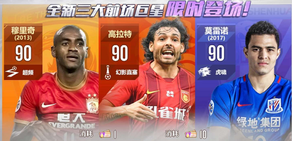 穆里奇2013,河北华夏高拉特,莫雷诺2017。