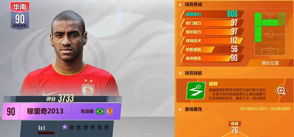 我们再来看一下位置方面,左前卫左边锋前锋三个位置都是深绿,右边锋也可以勉强胜任,这么丰富的场上位置真的是给本就强大的恒大阵容增加了更多的选择。感觉游戏中的韦世豪要失宠了。。。