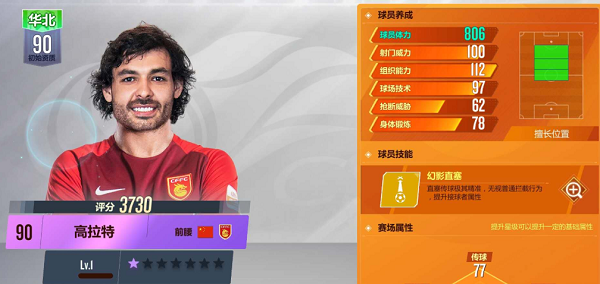 从位置上来说,高拉特适用于前锋,前腰,中前卫,总共也给了三个胜任位置,应该算是比较万金油了。对于河北华夏玩家来说真是天上掉下个林妹妹呀,太稀罕了。加上之前的拉维奇,前场简直就要起飞了。同时对于其他华北区的球队来说也是非常好的补充,尤其最重要的是,高拉特现在不算外援了,相信未来会在很多华北阵容的玩家那里看到高拉特的身影。再说一个槽点吧,高拉特给的是技能幻影直塞,这有点欠缺诚意了吧。作为一个紫卡球员,不应该给一个新的独一无二的技能吗,这样显不出和金卡球员的区别呀。更何况,幻影直塞这个技能我在哈姆西克身上实践过,效果比较一般。直塞这种技术在真实的比赛中确实难度很大,但是在游戏里,使用效果好像不是很明显。不知道游戏策划能不能看到我的攻略,能不能考虑修改一下。