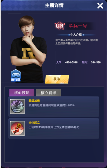 技能的升级:搜集主播的碎片,进行星级提升,就可以提升技能等级以及人气、魅力等其他属性了