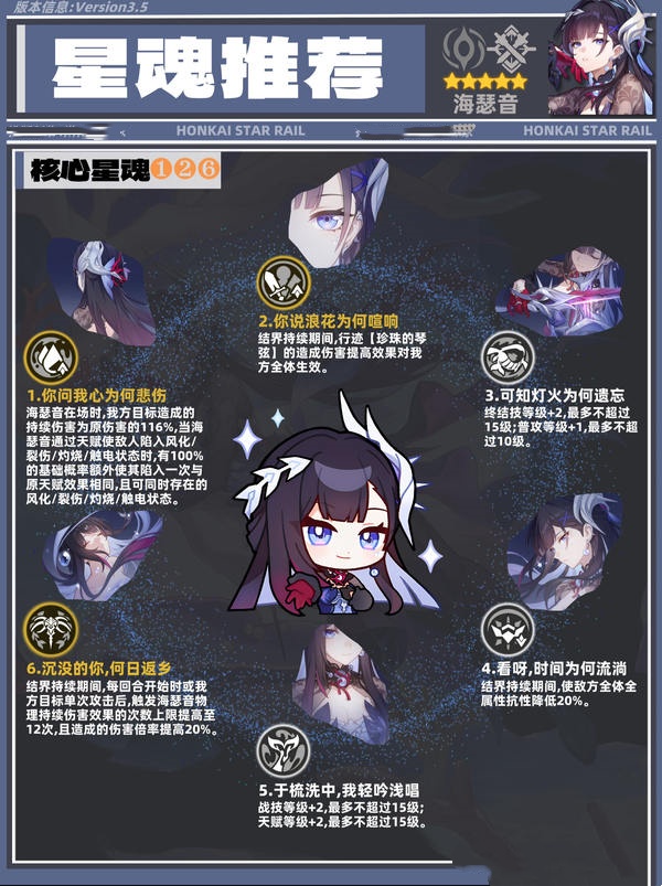 2.1星魂为全队DOT伤害带来16%提升,还将天赋挂DOT频率翻倍。这使得海瑟音挂DOT能力增强,配合终结技结算能稳定吃满更多层数,伤害提升巨大,预算有限时优先抽取。