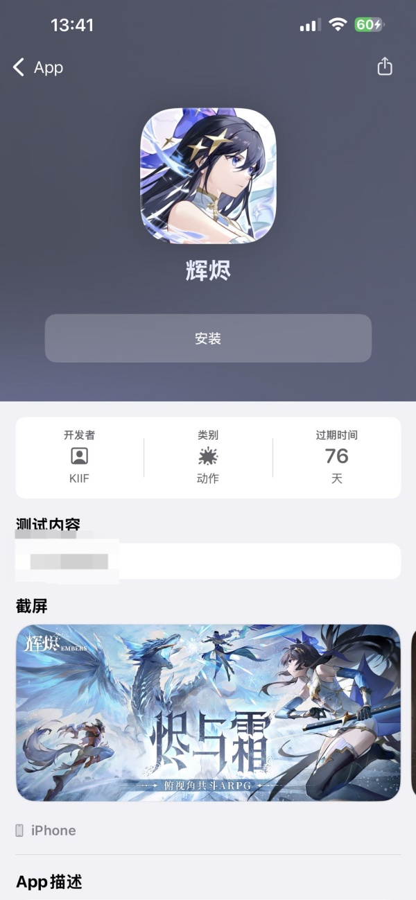 在TestFlight下载页面,点击“安装”按钮,等待游戏下载和安装完成。安装过程中,请确保设备网络连接稳定,避免因网络问题导致下载中断。安装完成后,你就可以在设备主屏幕上找到《辉烬烬与霜》的游戏图标,点击即可进入游戏进行测试体验。