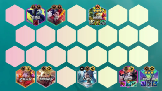 - 阵容构成:卡特、洛、蕾欧娜等,以战斗学院羁绊为主。