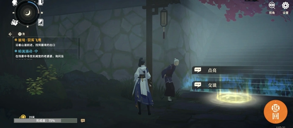 2、支线:顺着河往里面走与小女孩对话触发,帮找琴谱,任务物品发光在这雾天很显眼。