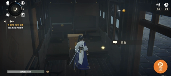 1、轻功上房后往左有个手记,往右藏个宝箱。