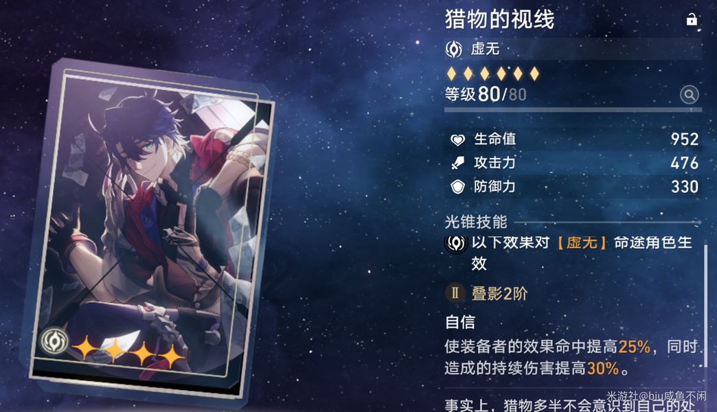 4.四星光锥首选【猎物的视线】,可降低词条压力并提供一定输出。遗器方面,外圈首选【系囚套】,海瑟音能轻松吃满效果;新出的【海隅套】也是不错的外圈选择。词条选择上,衣服选命中,鞋子选速度或攻击,物理球或攻击球,绳子选攻击或回能,属性优先级为效果命中>攻击>速度。合理的光锥和遗器搭配能让海瑟音发挥出更强的实力,但获取这些资源也需要投入大量精力和资源,这在抽取决策时需要考虑进去。