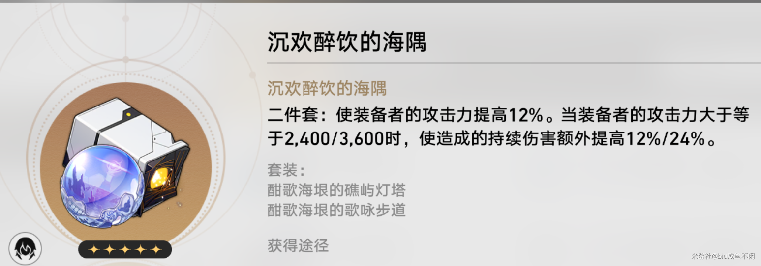 3.光锥和遗器搭配会影响海瑟音的实际表现,也关联着抽取决策。五星光锥方面,专武【海洋为何而歌】是最优选择,能提升自身40%效果命中、全队30%持续伤害易伤和队友速度,极大增强海瑟音和队伍的实力。若没有专武,椒丘专武【那无数个春天】伤害接近,黑天鹅专武【重塑时光之忆】也可作为替代。打虚构时,免费五星光锥【孤独的疗愈】能让海瑟音频繁开大,也是不错的选择。