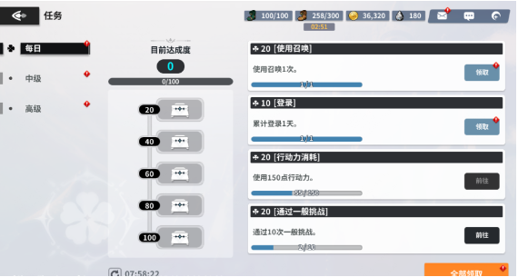 - 完成「每日任务」、「中级任务」、「高级任务」,及时领取丰厚奖励。