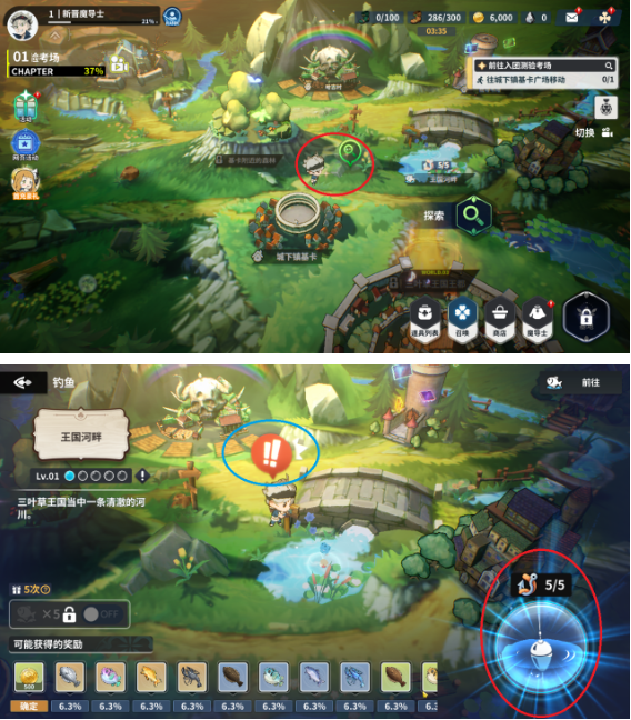 - 在「探索」和「钓鱼」玩法中可以获得各种食材,加工成料理可获得额外资源。