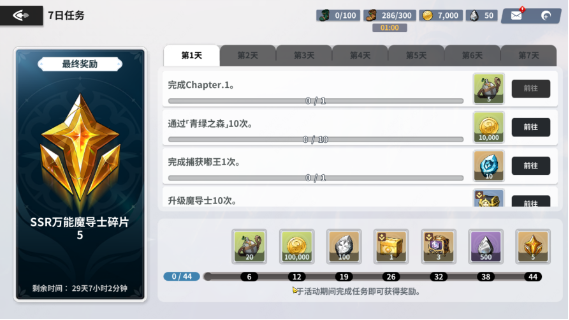 - 解锁「命运之门」任务,通过积累分数获得选定的SSR魔导士。