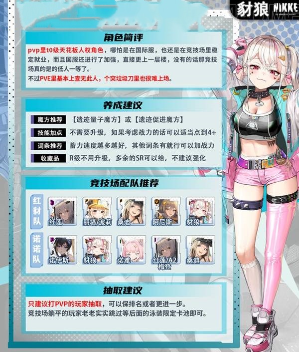 在胜利女神新的希望游戏当中,豺狼作为游戏中一个非常富有特色的防御类型角色,能给帮助玩家的队伍抗住大量的伤害,如果玩家们想要挑战高难度高伤害的关卡,那么练一个豺狼肯定是没错的。但是很多玩家还不清楚,胜利女神新的希望豺狼怎么培养,尤其是在nikke的国服,玩家们有的会觉得会和国际服有一定的区别。今天小编就为大家解说一下,胜利女神新的希望豺狼的详细培养攻略,希望能帮助玩家们!