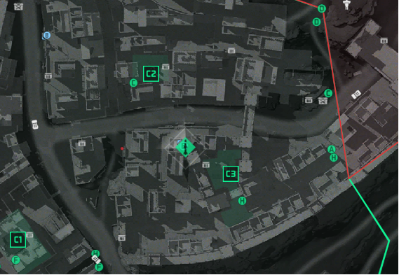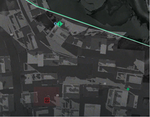 - 第五个任务点:在C2上方,位于最高一排平房中间。