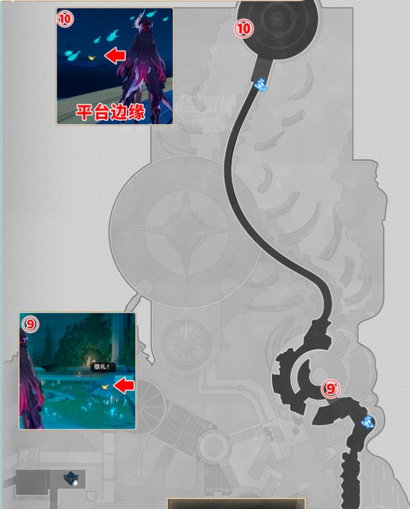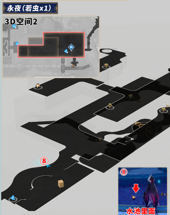 8.第八只和第九只若虫都在一条需要解开谜题才能打开门的通道内。“虫鸣秘宝谜题”共有三个,每解开一次门就会解锁一次,领取宝箱后会关闭,直到解开第三个谜题后通道门才会常开。谜题的基本思路是将球都打下来,开启时间静止,激活祷言神龛,控制每个球的位置使其落入凹槽中点亮凹槽。传送到岁月神殿传送点,进门破解谜题后,从进门右侧的通道进入,在进入三个宝箱房间之前的大门右侧,能找到第八只若虫。走出三个宝箱房间后,在室外解除挡路的机关,第九只若虫就会显现出来。解谜题时要仔细观察球和凹槽的位置关系,合理规划操作顺序。