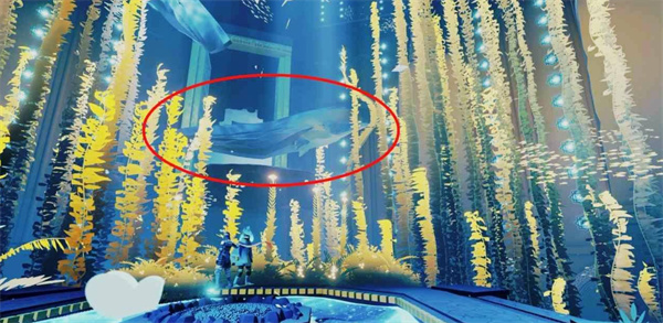 蓝鲸:在岛顶激活水源点后,区域出现蓝鲸。可借助周边海草重新跳至高处靠近蓝鲸。