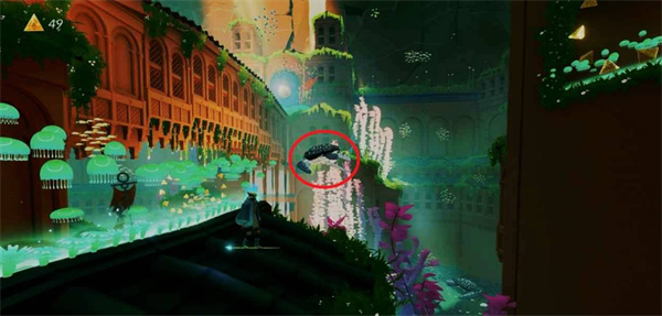 座头鲸:激活巨大雕像手部的水源点后,区域会出现座头鲸,利用新生海草跳到其背部。