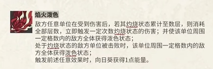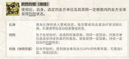2.绝技“炽烈灼烧”是团队核心助力,能让自身、选定队友及周围队友获得“烈阳”状态提升伤害,同时使敌人受非持续伤害后叠加灼烧效果(最高5层,每层造成攻击力20%构素伤害),实现持续附加伤害。
