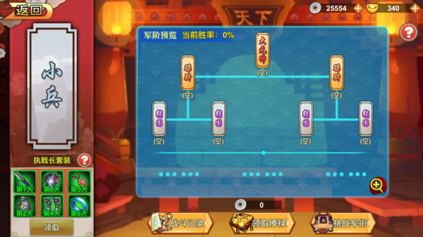 俗话说不想当将军的士兵不是好士兵。在这个版本中,我们新增了夺帅玩法,您需要不断战胜其他玩家,在三军中积累功勋,从副尉、校尉一路成长至大元帅,角逐最强的宝座。每个军衔都有对应的套装奖励和每日俸禄,兵马大元帅的套装更是游戏中的最强装备!